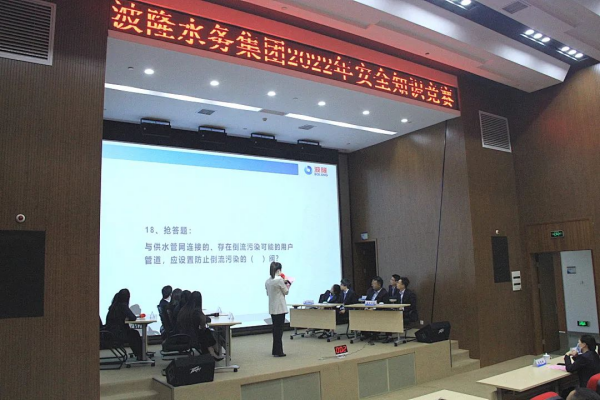 為進(jìn)一步提升全員安全素養(yǎng),10月21日,波隆水務(wù)集團(tuán)舉辦了2022年安全知識競賽。競賽活動分常規(guī)答題、題庫搶答、心有靈犀、觀眾互動四個環(huán)節(jié),涉及生產(chǎn)制水、水質(zhì)檢測、管網(wǎng)工程、用電用氣、消防急救等方面的安全常識,內(nèi)容豐富、生動且不失教育意義。