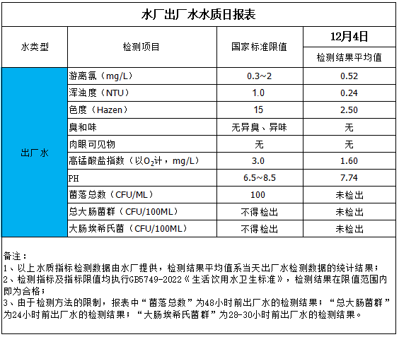 水廠出廠水水質(zhì)日報表(2025-12-4)