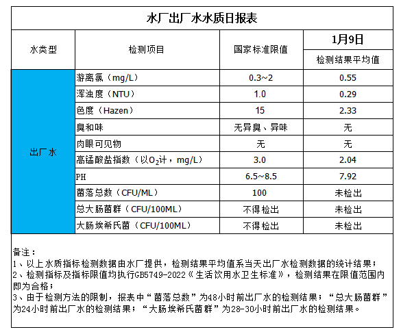 出廠水水質(zhì)日?qǐng)?bào)表(2026-1-9)