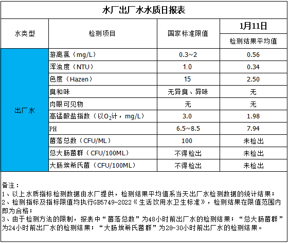 出廠水水質(zhì)日報表(2026-1-11)