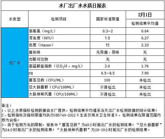 出廠水水質(zhì)日?qǐng)?bào)表(2026-2-1)