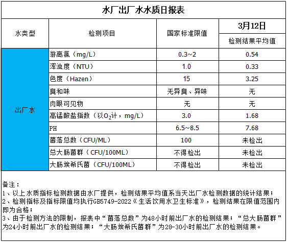 出廠水水質(zhì)日?qǐng)?bào)表(2026-3-12)