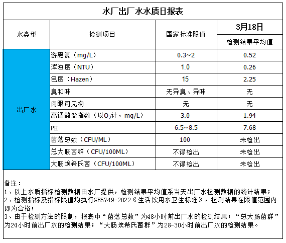 出廠水水質(zhì)日?qǐng)?bào)表(2026-3-18)