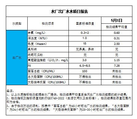 水廠出廠水水質(zhì)日報表(2023-5-1)