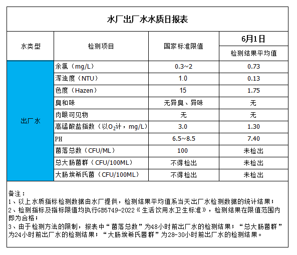 水廠出廠水水質(zhì)日報表(2023-6-1)