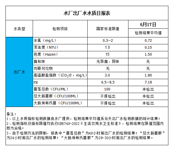 水廠出廠水水質(zhì)日?qǐng)?bào)表(2023-6-17)