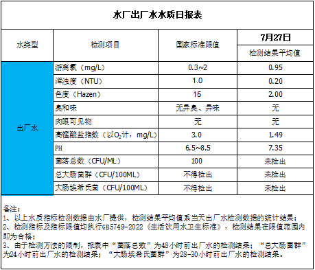 水廠出廠水水質(zhì)日報表(2023-7-27)